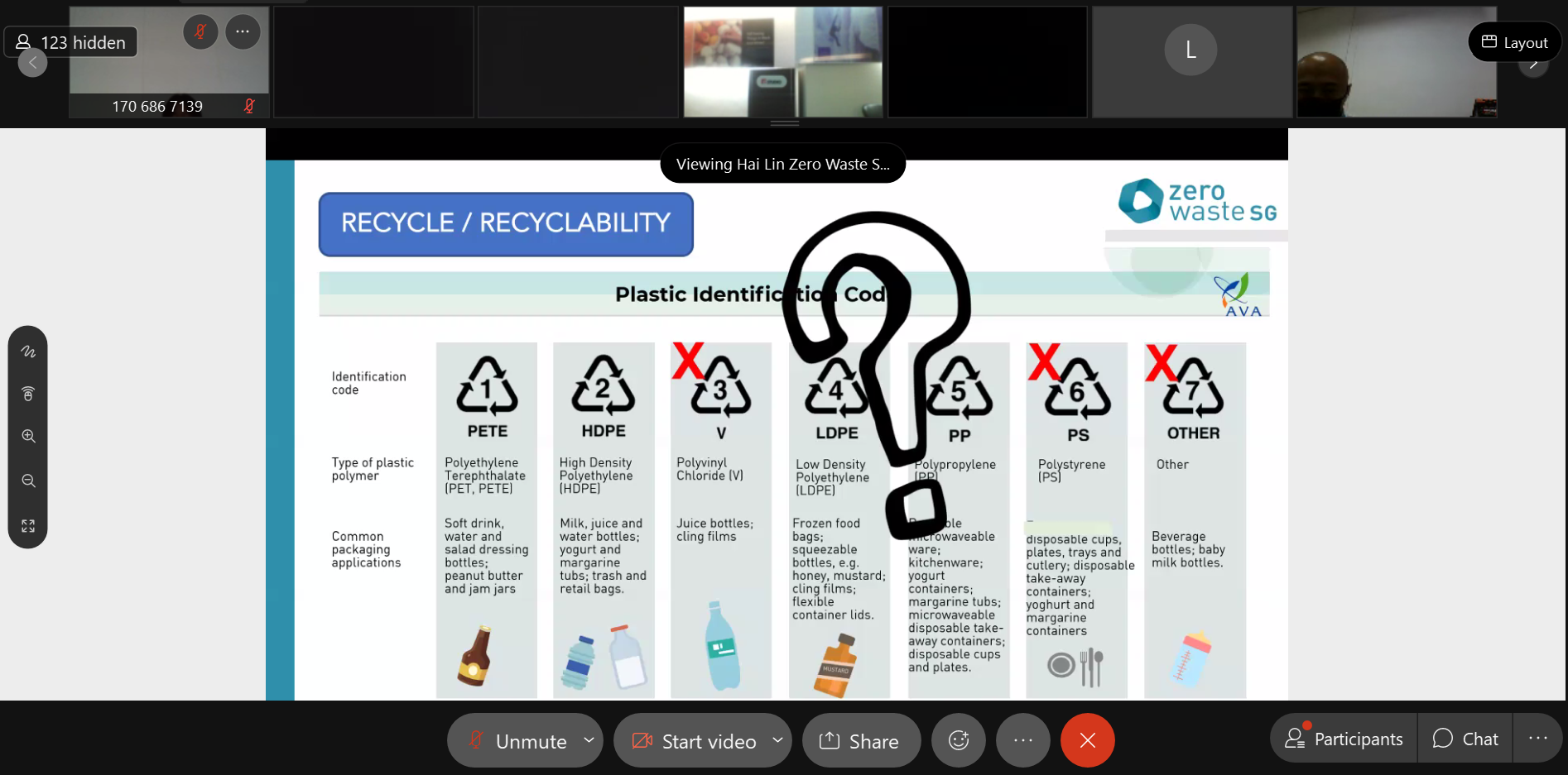 Ms Pek Hai Lin shared what the different plastic identification code meant on the plastic packaging.