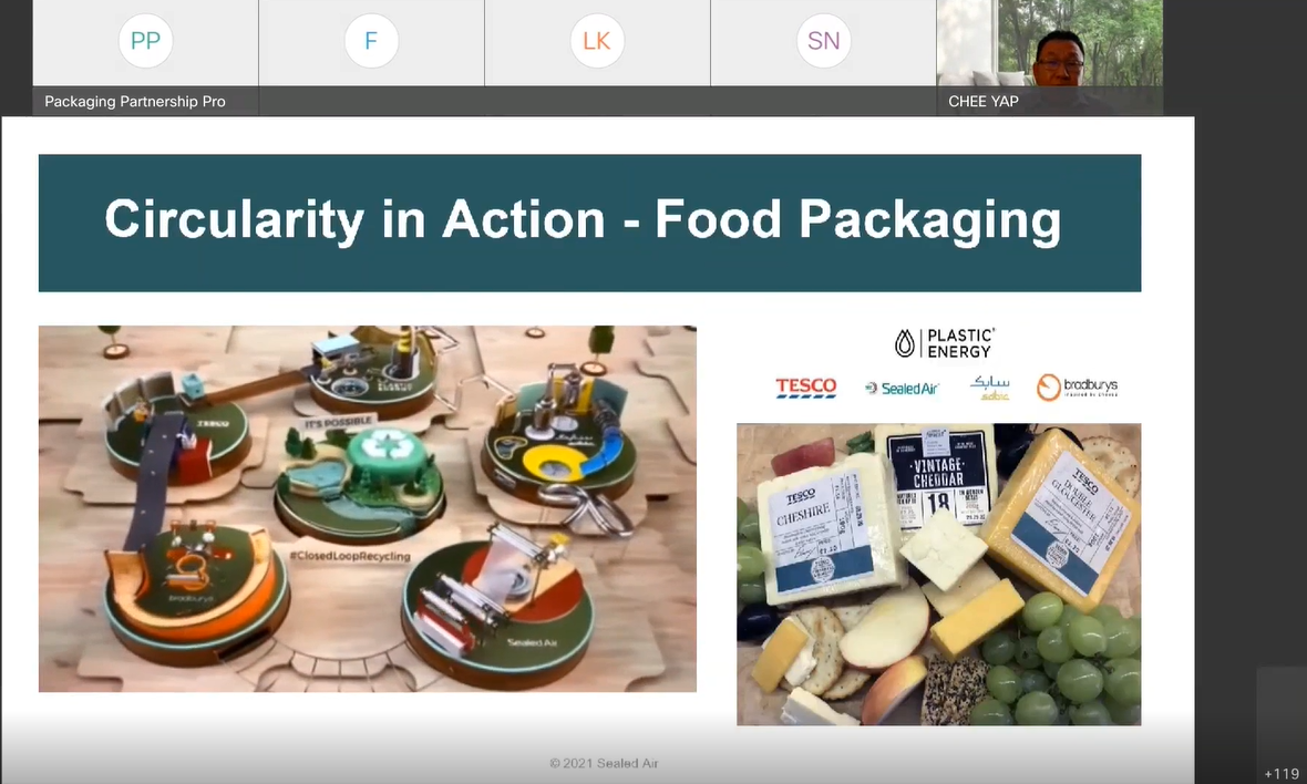 Mr Yap shared on examples of Sealed Air’s collaboration overseas with companies such as TESCO to achieve circularity for their food packaging materials.