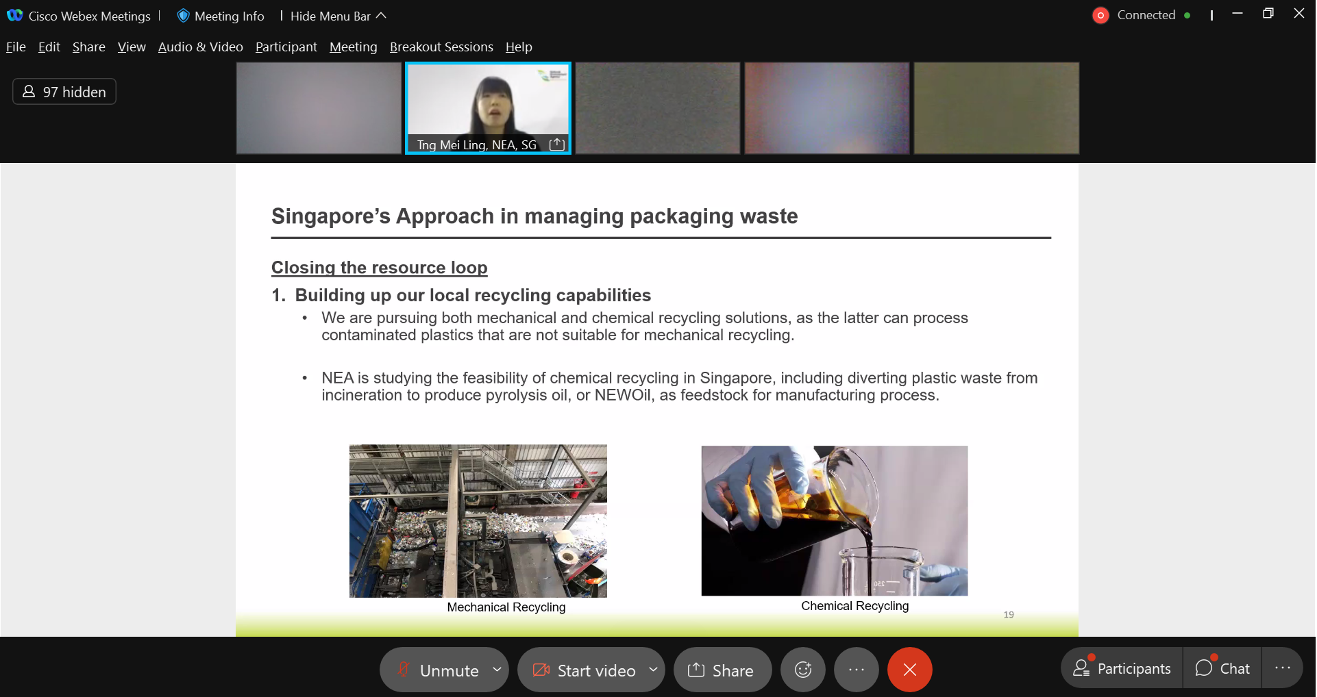Ms Tng Mei Ling shared on Singapore’s approach in managing packaging waste though building the capabilities of the recycling facilities in Singapore.